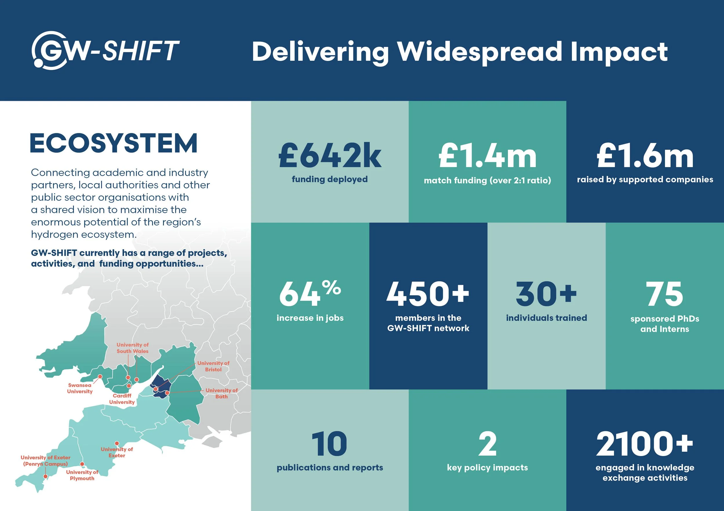 In 2025, GW-SHIFT delivered significant regional impact by mobilising investment, accelerating innovation, and strengthening the hydrogen ecosystem across South Wales and the South West. Our success hinges on our hydrogen ecosystem, and we aim to continue to support its growth throughout 2026 and beyond.